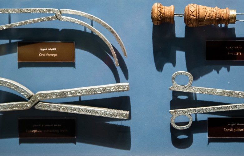Al-Zahrawi and other Muslim surgeons invented many new surgical instruments and procedures, as shown in this display.