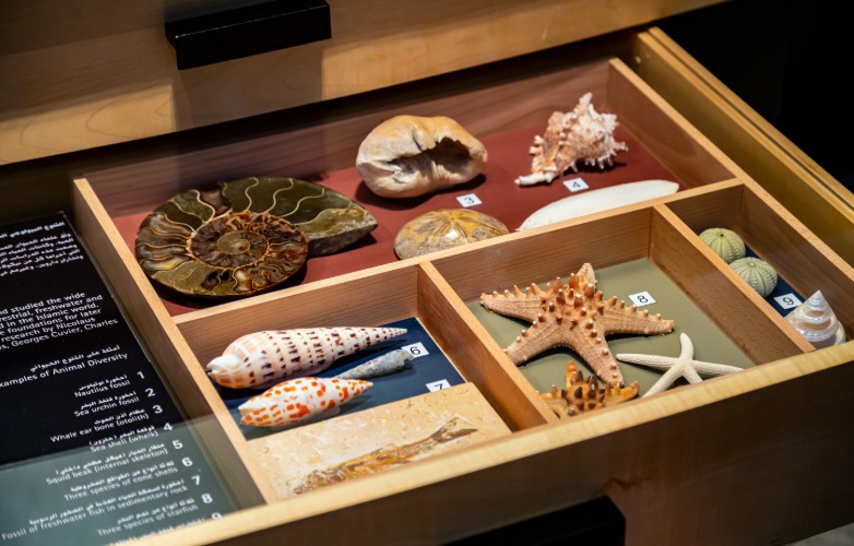 This display provides examples of the wide variety of freshwater and marine animals studied by Muslim zoologists.