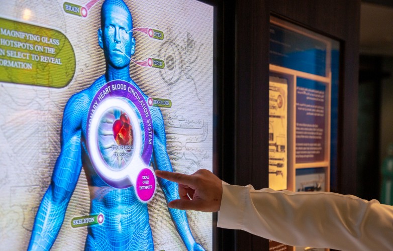 Muslim scientists made important contributions to the study of human anatomy, physiology and epidemiology. Some of these contributions are reviewed in this touch screen display.