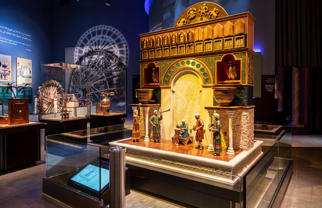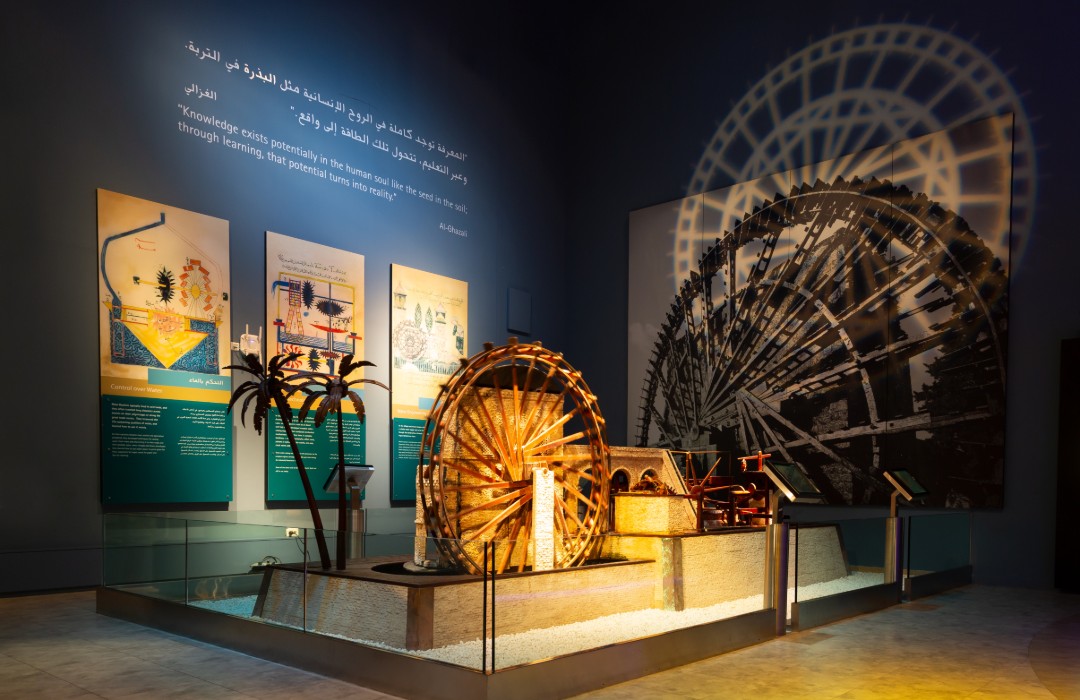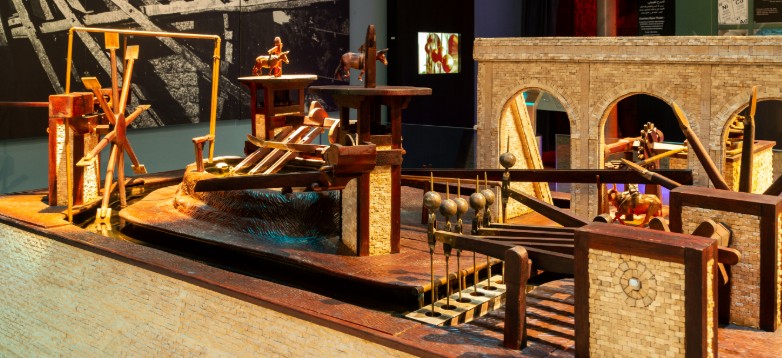 The Technology cluster showcases many of the amazing technological advances made by Muslim scholars and engineers. Working replicas of the giant Elephant Water Clock and Castle Clock of the famous Muslim engineer, al- Jazari, are displayed in this cluster. The exhibit has examples of innovative water-raising machines and ingenious mechanical devices.